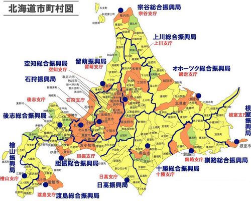 北海道は面積が広いので以前は「支庁」という名称で14の地域に分割されていました。それを、行政の効率化で2010年4月1日に「総合振興局」を9つ、「振興局」を5つに改編されました。一応同列に置くことで、支庁がそのまま移行した感じになります。 あんまり意…