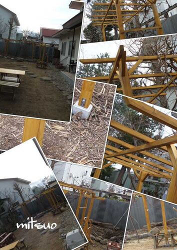 去年の大雪で壊れたぶどう棚を、片付けました。 まずは、撤去作業に5日ほどかかりました。 これは思った以上に大変でした。 それから、材料の鉋がけ、切りこみ、塗装、組み立てと4日くらい。中に雨の日がありましたので10日間くらいかかりました。 次いでな…