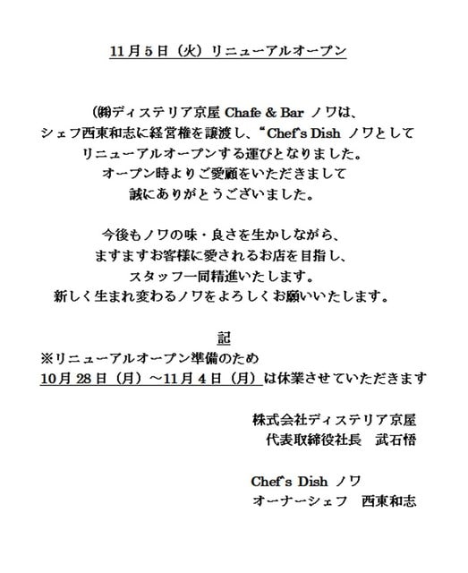 Cafe’s Dish ノワ 開店まであと2日